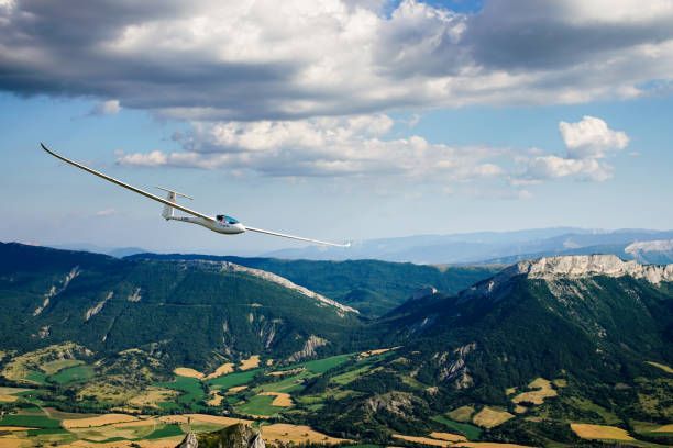 Close view of a red and white glider against a sky. Very high resolution 3D render.