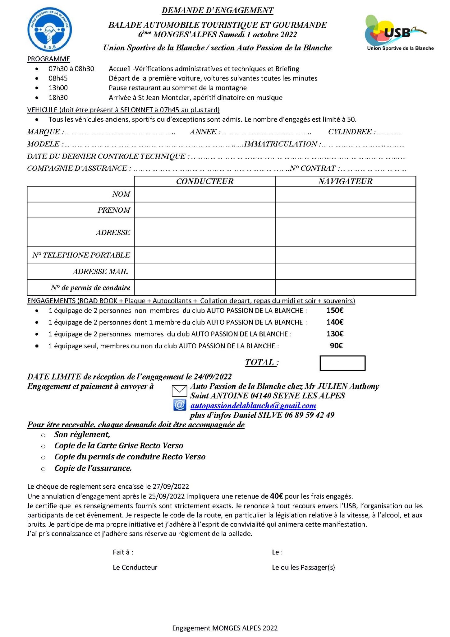 Bulletin engagement Balade Monges Alpes
